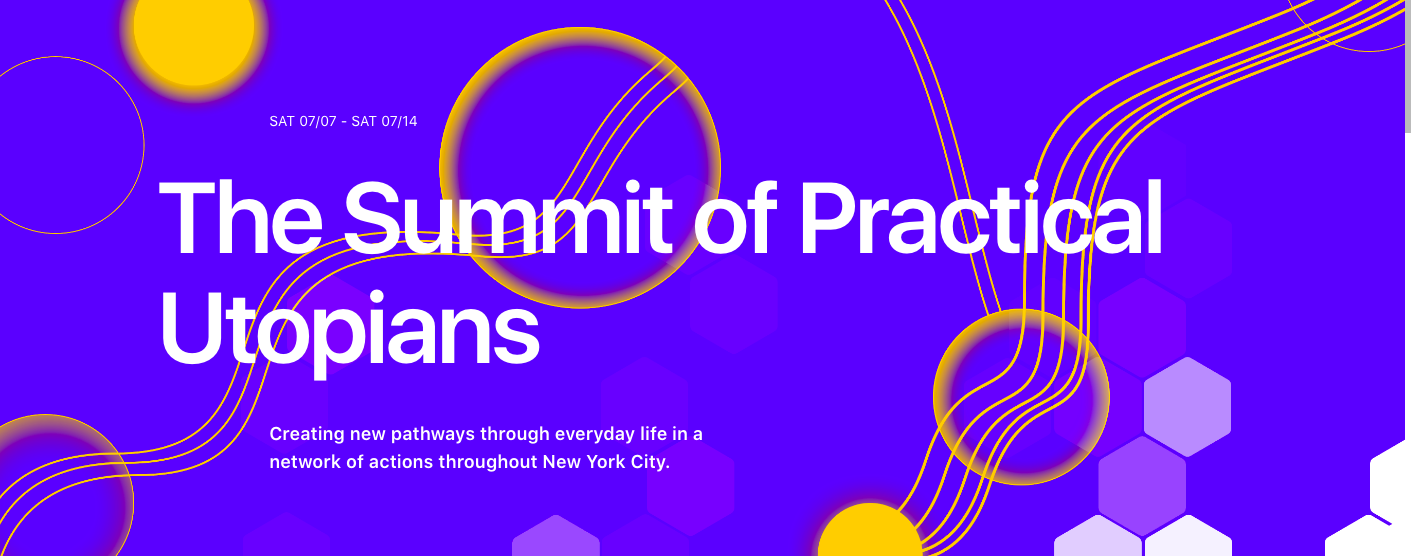 The project finished in The Summit of Practical Utopians (July 7–14, 2018), a weeklong network of actions across New York City designed to be part of everyday life. A supporting app enabled participants to choose new pathways through their routines, shifting their thinking and practice in community with others. The summit focused on individual decision-making and examined how we navigate social norms within an urban context.